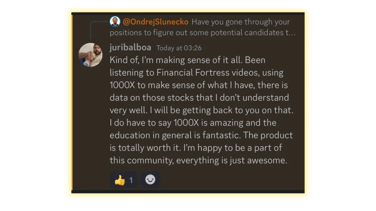 ✅ Let the 1000x education modules teach you beginner subjects & more advanced stock market strategies.